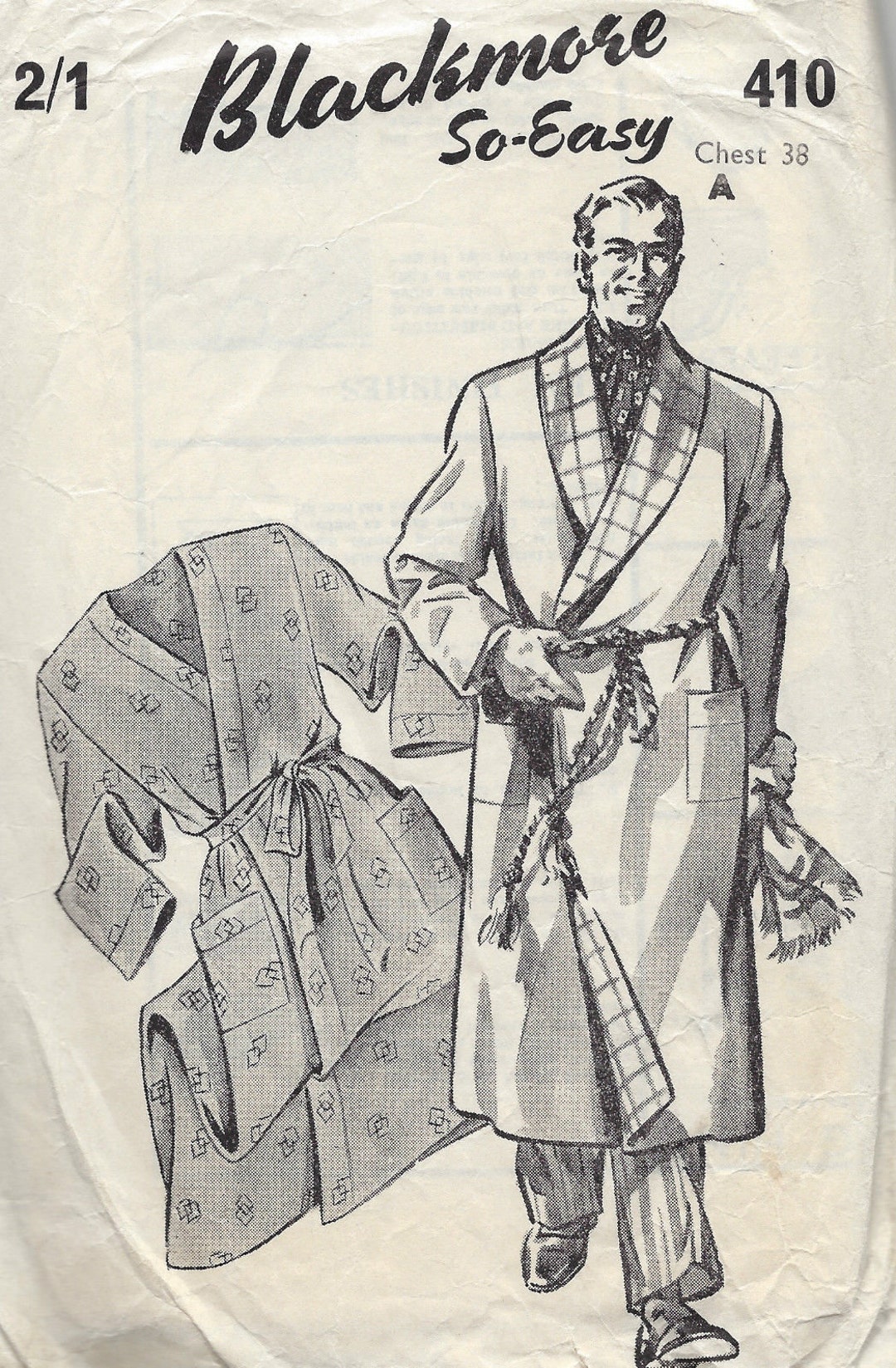 1940s Vintage Sewing Pattern Chest 38 Mens Dressing Etsy